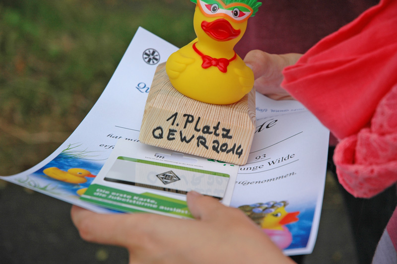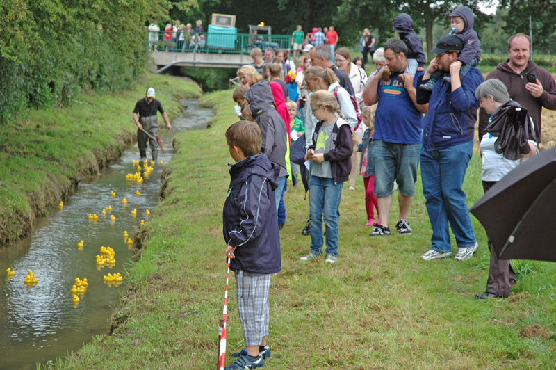 Beim 4. Quietscheentchenwettrennen am 5. Juli 2014 machte leider erstmals das Wetter der Veranstaltung einen Strich durch die Rechnung. Mehrere Regenschauer jagten über die Wanloer Niersbrücke und machten die Entenrennen sowie die vielfältigen Angebote abseits der Strecke zu einer nicht gerade sehr sommerlichen Angelegenheit. Nichtsdestotrotz kamen über 100 junge und alte Besucher, verfolgten die vier spannenden Rennen und erfreuten sich an der Auswahl bei der Grill- und Kuchentheke. Für die Kinder war zudem ein Zelt mit Torwand, Tischtennisplatte und fürs Kinderschminken aufgestellt worden.
