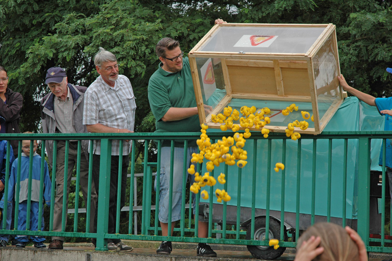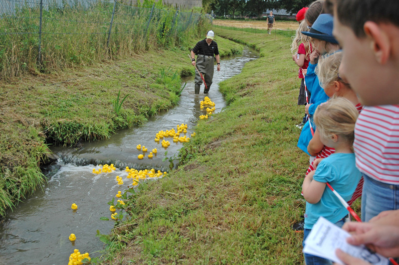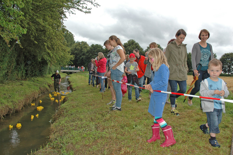 Beim 4. Quietscheentchenwettrennen am 5. Juli 2014 machte leider erstmals das Wetter der Veranstaltung einen Strich durch die Rechnung. Mehrere Regenschauer jagten über die Wanloer Niersbrücke und machten die Entenrennen sowie die vielfältigen Angebote abseits der Strecke zu einer nicht gerade sehr sommerlichen Angelegenheit. Nichtsdestotrotz kamen über 100 junge und alte Besucher, verfolgten die vier spannenden Rennen und erfreuten sich an der Auswahl bei der Grill- und Kuchentheke. Für die Kinder war zudem ein Zelt mit Torwand, Tischtennisplatte und fürs Kinderschminken aufgestellt worden.