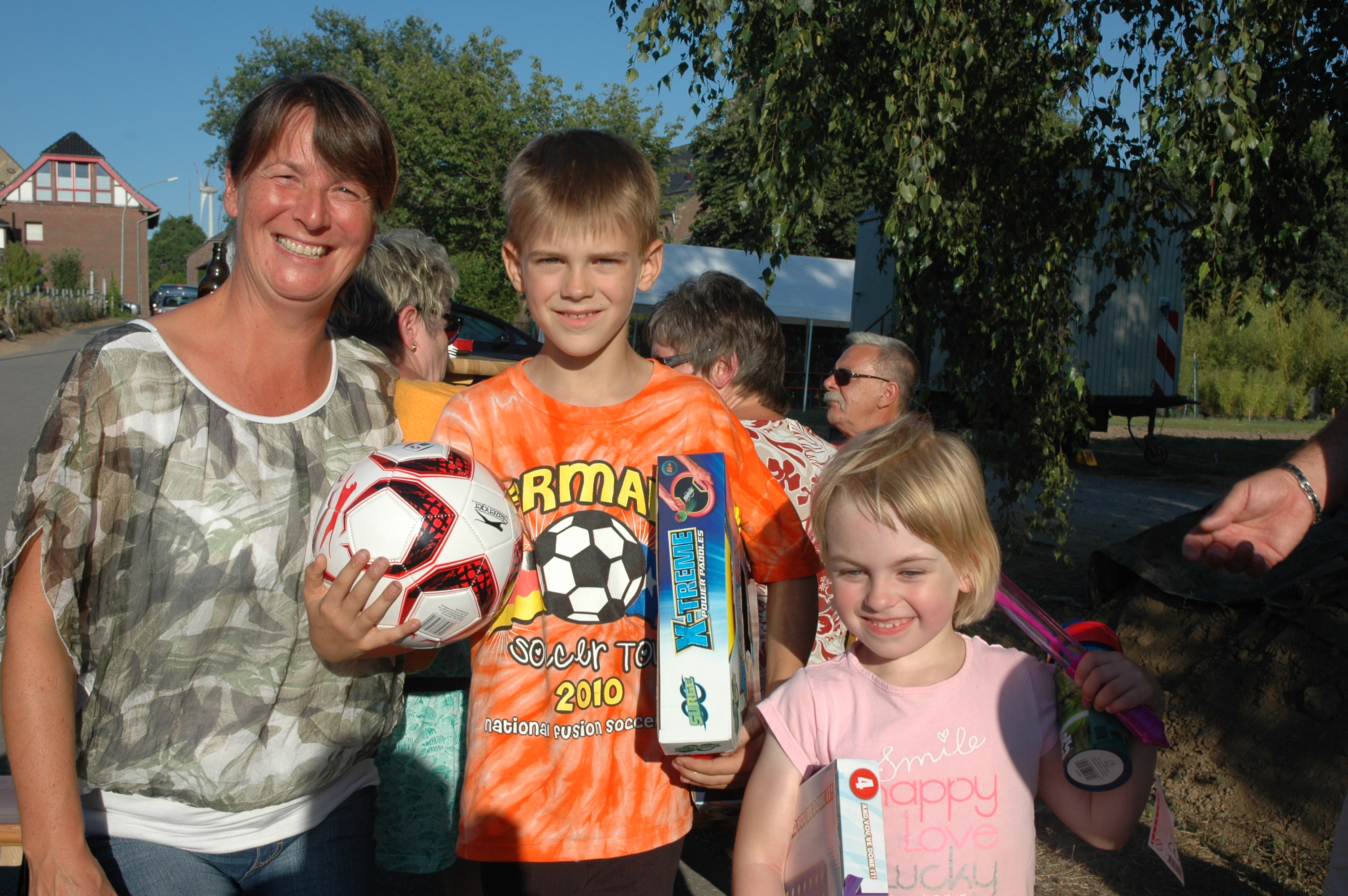 Den Auftakt machte die Bruderschaft Wanlo am ersten Samstag der Sommerferien mit der inzwischen achten Auflage des Quietscheentchenwettrennens auf der Niers. An die 200 Besucher kamen bei bestem Sommerwetter zur Niersbrücke und erlebten wieder einige spektakuläre Rennen. Vor allem für die Kinder war dieses Event wieder besonders spannend, erstmals konnten sie auch mit selbst gestalteten Enten an einem Rennen teilnehmen. Eine Hüpfburg, eine Torwand und Gratis-Eis rundeten das Entenrennen wieder erfolgreich ab.